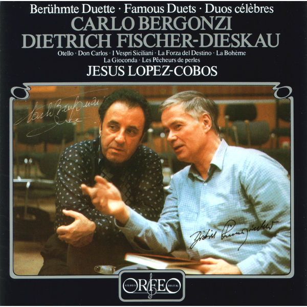 L’alliage de leurs timbres était magique, pas autant pourtant que la parfaite équivalence de style qu’ils partageaient, cet art de mettre dans le bel canto le plus tenu les mots les plus justement expressifs. On retrouve le grand duo des retrouvailles de Don Carlo et de Posa à la toute fin du disque, ardent, d’un panache fou, où chacun fait assaut d’héroïsme vocal, mais cet album venu tardivement les rassemble dans des œuvres qu’ils n’abordèrent jamais ensemble, leur témoignage y est d’autant plus précieux qu’on y entend en fragment l’Otello qu’aurait pu être Carlo Bergonzi et chez Verdi toujours ce Monfort, ce Don Carlo di Vargas que Dietrich Fischer-Dieskau ne grava jamais dans leurs intégralités.