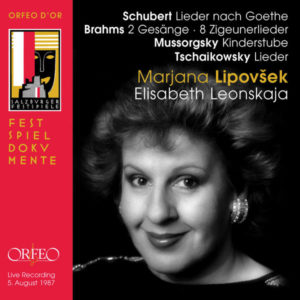 Marjana Lipovšek, diva des scènes lyriques, fut un peu à la manière des anciens monstres sacrés – je pense à Jennie Tourel, Mascia Predit – une récitaliste impénitente. Moins polyglotte que Tourel, elle était chez elle à égale aisance dans les langues de Goethe et de Pouchkine. Son récital pour l’édition 1987 du Festival de Salzbourg m’étonne sur un point : elle incarne avec une imagination assez insensée les Enfantines de Moussorgski mais les donne en langue allemande, dans la traduction d’Hans Schmidt. C’est qu’elle met tant d’exactitude au sens des mots qu’elle aura voulu les rendre audibles à un public d’abord germanophone.